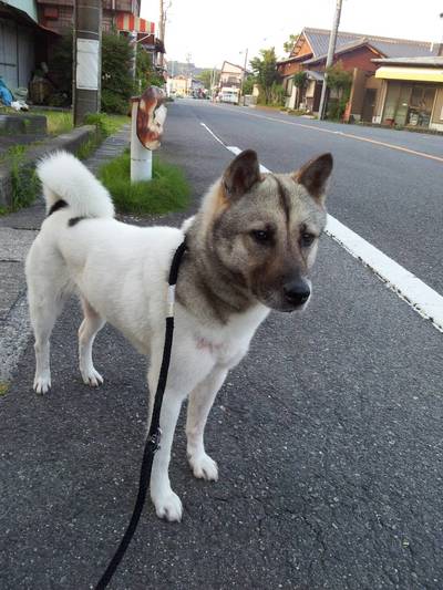 紀州犬6歳の雌 毛色は希少な「斑」        攻撃性はなく、人にも犬にも凄く優しい女の子です。 ただ、猫を見つけると、猟犬の血が甦り大変‼